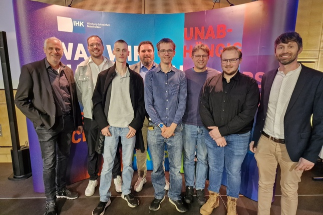Würzburg, 13.12.2024. Die Teilnehmenden Katelin Baumann, Marcel-Niklas Hübner, Luis Weber und Jan Wolfert vom Caritas-Don Bosco-Bildungszentrum in Würzburg haben ihre Ausbildung im Jahr 2024 als Kammerbeste abgeschlossen. Für ihre Leistungen wurden sie nun geehrt.