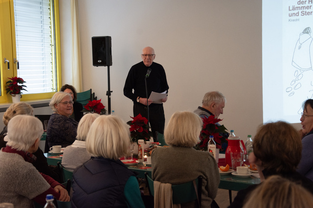 Würzburg, 09.12.2024. Der Diözesan-Caritasverband hat seine ehemaligen Mitarbeiterinnen und Mitarbeiter auch in diesem Jahr zum traditionellen Advent der Ehemaligen geladen. Dabei gab es freudige Wiedersehen, angeregte Gespräche, Christstollen und eine etwas ungewöhnliche Weihnachtsgeschichte.