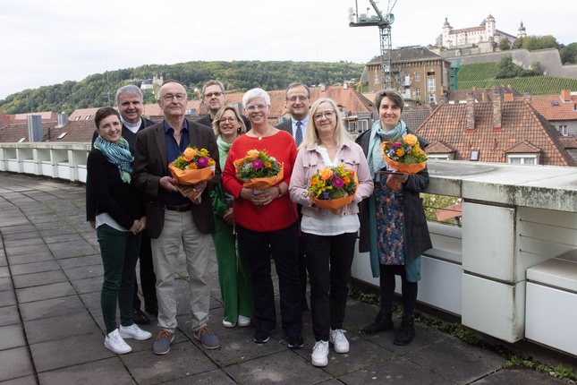 Würzburg, 01.10.2024. Vier Mitarbeiterinnen und Mitarbeiter des Caritasverbandes für die Diözese Würzburg e. V. freuten sich zu Beginn der neuen Arbeitswoche über Glück- und Dankesworte anlässlich ihrer runden Geburtstage und Dienstjubiläen.