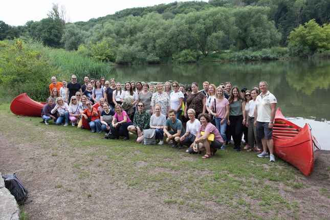 Würzburg/Volkach, 24.06.2024. Rund 120 Mitarbeiterinnen und Mitarbeiter des Diözesan-Caritasverbandes (DiCV), der Caritas-Schulen gGmbH und der Caritas-Einrichtungen gGmbH haben Volkach und die Volkacher Mainschleife beim diesjährigen Betriebsausflug am 20. Juni 2024 besucht.