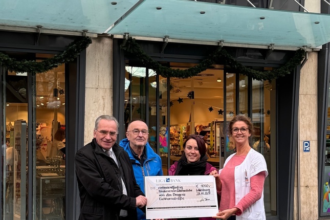 Würzburg, 03.12.2024. Der dm-Drogeriemarkt in der Würzburger Eichhornstraße fördert die Arbeit des Fördervereins Wärmestube mit einer Spende von 1.050 Euro.