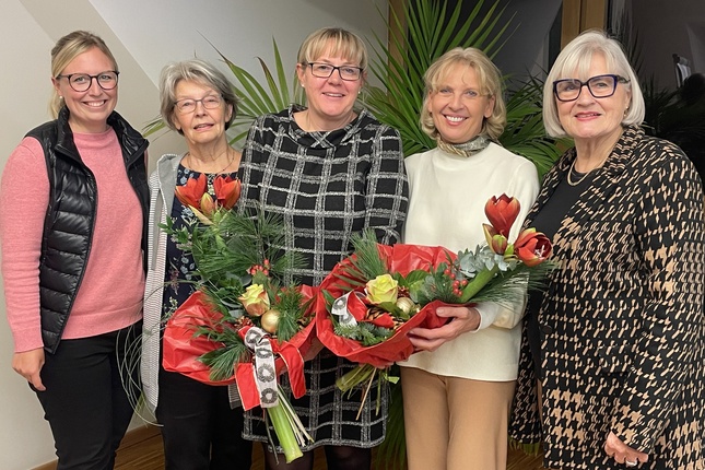 Würzburg, 04.12.2024.Die Teilnehmerinnen der konstituierenden Vorstandssitzung des Sozialdienstes katholischer Frauen (SkF) e.V. Würzburg haben Ulrike Lang zur neuen Vorsitzenden des Vereins gewählt. Sie folgt in dieser Position auf Dr. Anke Klaus, die sich nach 28 Jahren ehrenamtlicher Vereinsarbeit aus dem Vorstand zurückgezogen hatte.