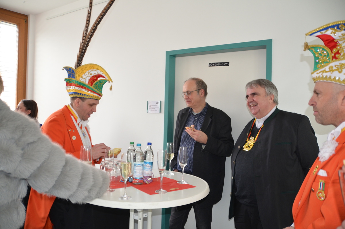 Mit Blick auf den vor zwei Tagen stattgefundenen ökumenischen Gottesdienst der Karnevalisten dankte Präsident Göbel dem Caritasvorsitzenden auch ganz persönlich für dessen Einsatz und Mitwirken. Gerade mit Blick auf das schreckliche Ereignis, das sich am 22. Januar in Aschaffenburg abgespielt hat und dem am selben Abend im Gottesdienst gedacht wurde, sei es wichtig, nicht wegzusehen. „Wir schließen die Opfer in unsere Gebete ein, wollen mit unserem Erscheinen bei den Menschen in solch schwierigen Zeiten aber auch für ein wenig Heiterkeit sorgen“, so Göbel.