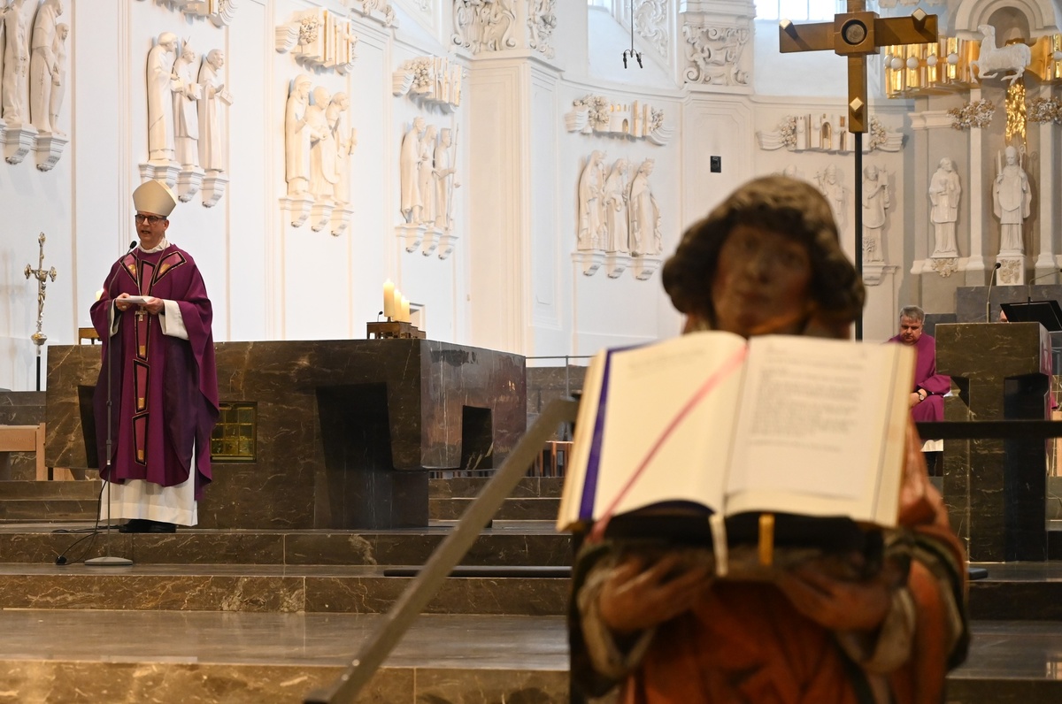 In seiner Predigt ging der Bischof auf das „Leben in Erwartung der Wiederkehr des Herrn“ ein. Bezugnehmend auf die Lesung betrachtete er eine Botschaft des Apostels Paulus (1.Thessalonicher 5,16-23). Dessen Aufforderung „Freut euch zu jeder Zeit!“, deutete Jung als Auftrag sich auch in Krisen die Freude, die Gott mit seiner Nähe schenke, nicht nehmen zu lassen. Es sei wichtig die Gemeinschaft mit Gott im Gebet zu suchen, um Kraft zu schöpfen. „Gebetspausen sind kein Luxus, sondern bisweilen überlebensnotwendig“, so der Bischof.