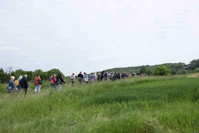 In Pfaffendorf liegt das Jugendhilfezentrum Dominikus Savio, das an diesem Tag Start- und Zielpunkt der Teilnehmerinnen und Teilnehmer der diesjährigen AGkE-Wallfahrt ist. Die AGkE-Wallfahrt bringt in jedem Jahr all diejenigen zusammen, die sich in den verschiedensten Einrichtungen der Kinder- und Jugendhilfe engagieren. Ziel ist es, sich gemeinsam auf den Weg zu machen und sich auszutauschen. Dieses Mal geht es an den Rand des Bistums, brachte es Domkapitular Clemens Bieber, Vorstand des Caritasverbands, in seinen Begrüßungsworten treffend auf den Punkt. Dass Pfaffendorf die Grenzen Unterfrankens und damit der Diözese markiere, sei gleichsam als Bild für diesen Tag zu verstehen. „Schließlich setzen wir uns in unserer täglichen Arbeit für all die Kinder und Jugendliche ein, die am Rand der Gesellschaft stehen“, so der Caritasvorsitzende weiter. Er schickte die Wallfahrer mit einem Segen und guten Wünschen auf den rund zwei Kilometer langen Fußmarsch. „Kommen Sie hier später wieder mit einem guten Gefühl an und gehen sie heute Abend in dem Wissen nach Hause, dass an diesem Ort viel Gutes für Sie und für die Ihnen anvertrauten Kinder und Jugendlichen geschieht“, so Bieber. Sabrina Göpfert, AGkE-Geschäftsführerin, schloss sich den Worten ihres Vorredners an: „Heute wollen wir uns Zeit nehmen, um anzukommen, zu genügen und gemeinsam auf die Dinge schauen, die uns wertvoll sind.“ Damit gab sie gleichzeitig einen ersten Gedanken- und Gebetsimpuls, der die Mitarbeiterinnen und Mitarbeiter aus den teilnehmenden Einrichtungen den Tag über begleiten sollte.