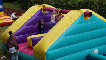 Am Nachmittag warteten rund um das Kinderdorf und die St. Martin Schule vielfältige Spielangebote auf die Besucher des Antoniusfestes. So zählten der elektrische Bulle und die Hüpfburg ebenso zu den Attraktionen wie die Glitzer-Tattoos, die Kinderdorf-Rallye, Bastelaktivitäten oder Kistenklettern. Mit dem traditionellen Fußballspiel der Kinderdorfkinder und der ehemaligen Kinderdorfbewohner fand das Fest einen schönen Ausklang.