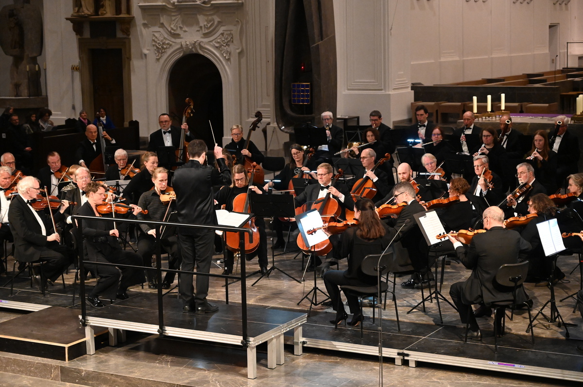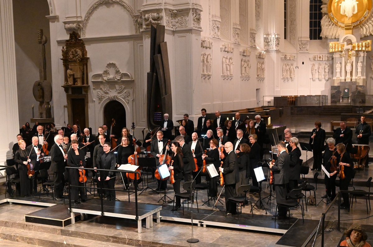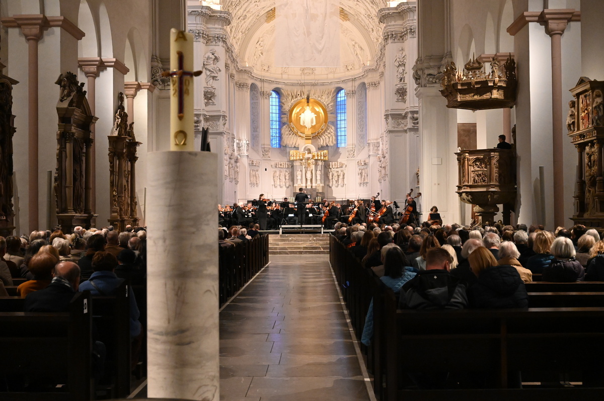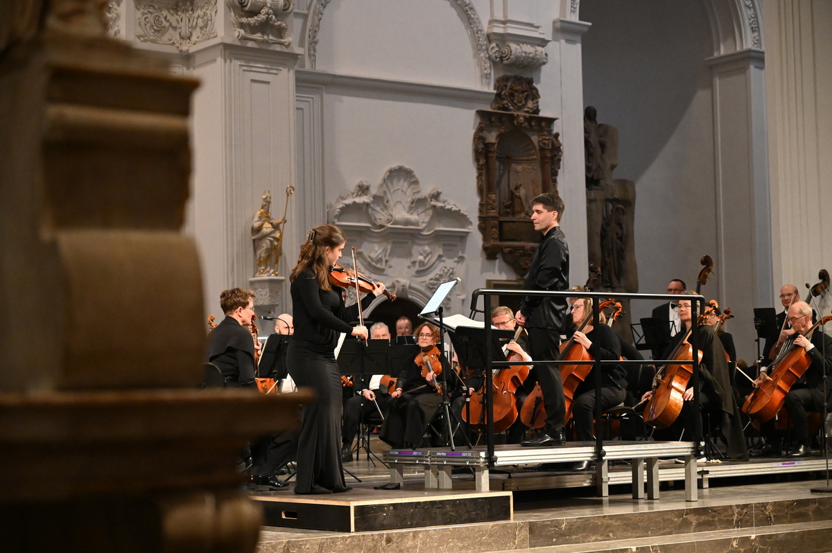 Im Kiliansdom lauschten die etwa 500 Konzertbesucherinnen und -besucher folglich Ludwig van Beethovens Konzert für Violine und Orchester in D-Dur, mit Ruth Elisabeth Müller an der Violine, sowie Joseph Haydns Sinfonie Nr. 104 in D-Dur. Der kräftige und langanhaltende Applaus am Ende brachte zum Ausdruck, wie sehr das hervorragende Spiel der Musikerinnen und Musiker dem Publikum gefallen hatte.