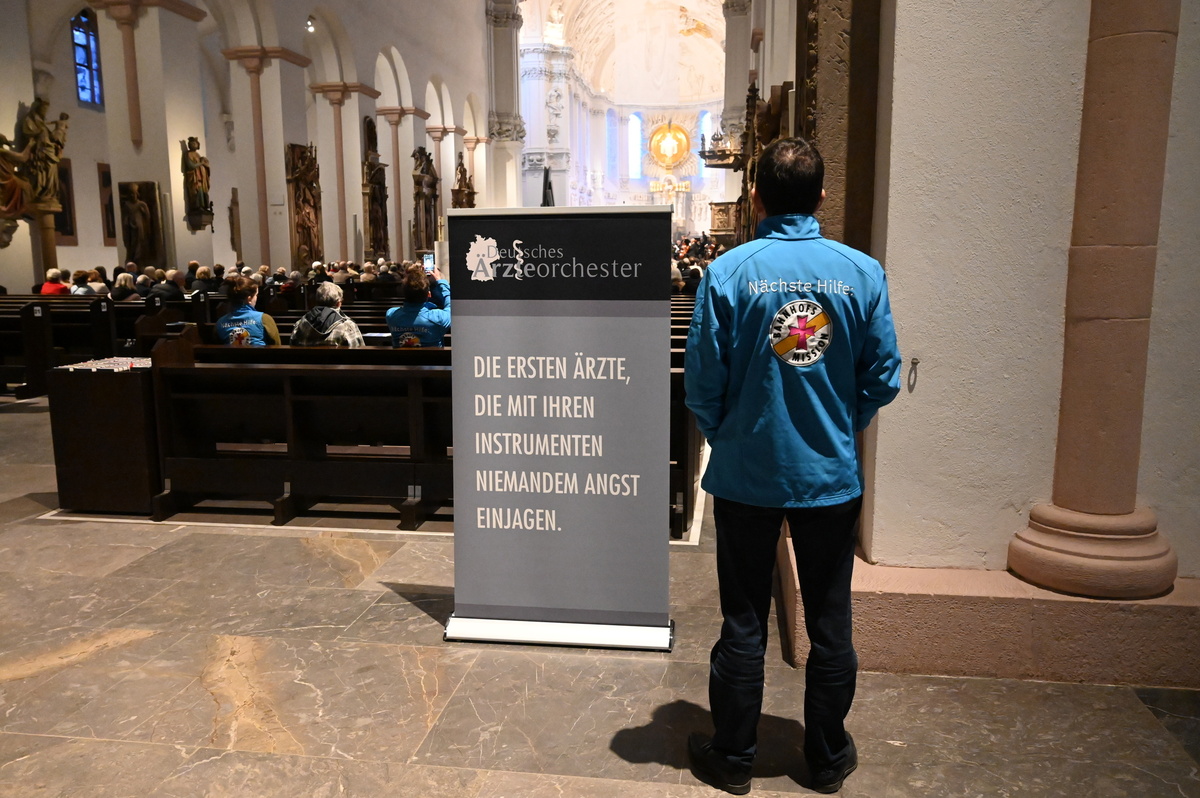 Im Anschluss stellte Dr. Johannes Neumann, stellvertretender Vorsitzender des Deutschen Ärzteorchesters e. V., das seit 35 Jahren bestehende Sinfonieorchester kurz vor. Insgesamt hat es rund 150 Mitglieder, überwiegend Ärztinnen und Ärzte sowie Angehörige medizinnaher Berufe. Nach Würzburg waren rund 60 Musikerinnen und Musiker gekommen, um unter Leitung von Dirigent Alexander Mottok zugunsten der Bahnhofsmission zwei Werke der Wiener Klassik zu spielen.