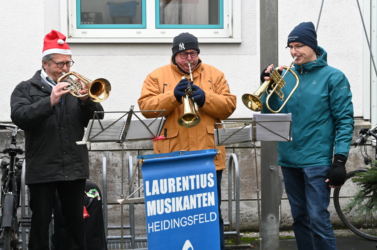 „Alle Jahre wieder“ tönten die Klänge von Tuba, Saxophon und Trompete durch den teils überdachten Hof der Würzburger Rotkreuzklinik. Der musikalische Auftakt der Laurentius Musikanten Heidingsfeld passte gleich doppelt: Denn die Weihnachtsandacht für wohnsitz- und obdachlose Menschen mit dem Bischof am 24. Dezember ist inzwischen gute Tradition. Organisiert hatten sie Mitglieder und Unterstützer des Fördervereins Wärmestube unter Federführung des stellvertretenden Vorsitzenden Bernhard Christof.