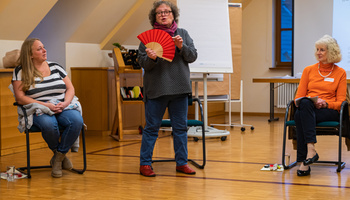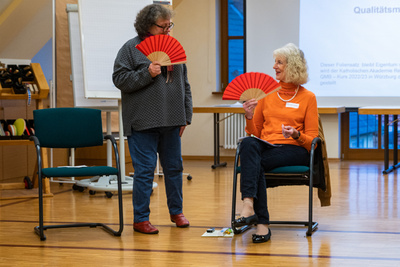 „Qualität steht ganz oben, weil es in den Diensten und Einrichtungen der Caritas um Menschen geht, Klientinnen, Bewohner und Patienten, aber auch Mitarbeiterinnen und Mitarbeiter.“ So begrüßte Fachberaterin Heike Sterzinger-Allaham die Teilnehmerinnen und Teilnehmer und ganz besonders Referentin Hannelore Josuks. „Ich bin absoluter Fan des QM nach der DIN ISO Norm. Ebenso ist ein gut funktionierendes QM-System ein wesentlicher Faktor zur Mitarbeiter- und Kundenzufriedenheit“, bekannte die Caritasfrau und wünschte für den neuen Kurs gutes Gelingen und viel Spaß. Sterzinger-Allaham hatte nicht nur Gummibärchen zur Stärkung mitgebracht, sondern für die Teilnehmerinnen und Teilnehmer einen roten Fächer. „Der soll Sie nicht nur an die Caritas erinnern, sondern dient für frischen Wind bei hitzigen Diskussionen oder um sich bisweilen dahinter zu verstecken.“ Zugleich sei er auch ein Sinnbild für den bevorstehenden Kurs. „Nach und nach wird sich für Sie der QM-Fächer auffalten und Sie wirklich bereichern.“