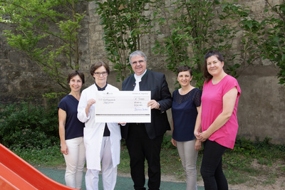 Die Caritasstiftung Würzburg unterstützte die wichtige Arbeit von Harl.e.kin schon öfter in den vergangenen Jahren und hat nun erneut eine Spende von 5000 Euro übergeben. Für die symbolische Scheckübergabe besuchten Domkapitular Clemens Bieber, Vorsitzender des Diözesan-Caritasverbandes, und Sonja Schwab, Leiterin der Abteilung Soziale Dienste im DiCV, das Harl.e.kin-Team an der Missio Kinderklinik im Würzburger Frauenland. Domkapitular Clemens Bieber: „Wir wissen um die wertvolle Arbeit, die jungen Familien mit Früh- und Neugeborenen durch Harl.e.kin zugutekommt, und unterstützen diese gerne.“