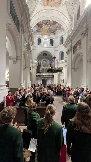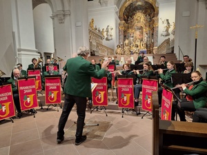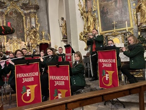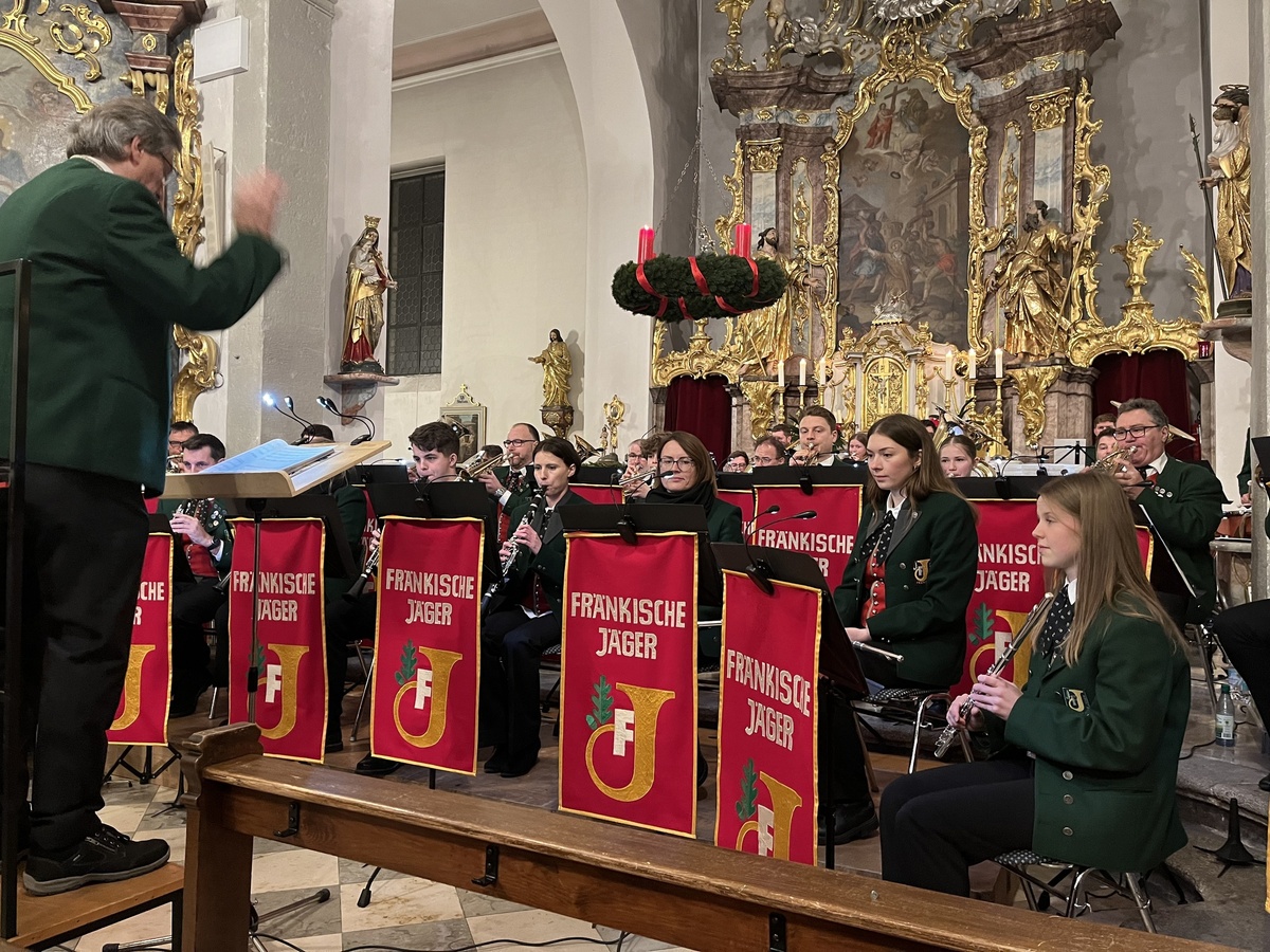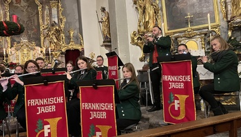 Die „Fränkischen Jäger“ bereiteten den Menschen in ihrer Heimat eine Einkehr und eine Stunde der Besinnung. In der vollbesetzten Pfarrkirche St. Stephanus und St. Anna in Gaubüttelbrun bedankten sich die vielen Zuhörerinnen und Zuhörer mit lang anhaltendem Applaus. Über vierzig Frauen, Männer und Jugendliche engagieren sich bei den „Fränkischen Jägern“ als Musikerinnen und Musiker unter der Leitung von Lothar Heim.