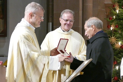 Ein besonderes Dankeschön für seine langjährige ehrenamtliche Tätigkeit als Vorsitzender der Caritas-Sozialstation Sankt Elisabeth in Aschaffenburg hat am Donnerstag, 16. Januar, Berthold Orschler (76) erhalten. Generalvikar Dr. Jürgen Vorndran überreichte dem Diplom-Kaufmann den Päpstlichen Silvesterorden. Laut Vorndran ist Orschler damit der dritte Ehrenamtliche aus dem Bereich der Caritas, der diese Auszeichnung im Bistum Würzburg erhalten hat.