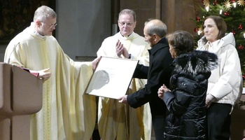 Orschler zeigte sich sehr überrascht und bewegt über die hohe Auszeichnung und betonte, dass die Arbeit nicht ohne die vielen engagierten Mitarbeiterinnen und Mitarbeiter der Caritas leistbar gewesen wäre. Zum Zeichen dafür hatte der Generalvikar die anwesenden Mitarbeiter der Caritas gebeten, sich zur Ordensverleihung im Altarraum hinter den Geehrten zu stellen, um ihm den Rücken zu stärken.