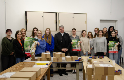 Dass das stimmt, bestätigte auch das schnelle Tempo, in dem die Mitarbeitenden die Pakete zusammenstellten. So benötigten sie nicht einmal einen ganzen Arbeitstag, um alle bestellten Artikel für den Versandweg vorzubereiten. „Das ist ein neuer Rekord!“, freute sich eine Mitarbeiterin, die bereits mehrmals bei der Packaktion mitgeholfen hatte. Zum Dank für die tatkräftige und schnelle Mitarbeit spendiert Bieber allen Helferinnen und Helfern einen süßen Krapfen.