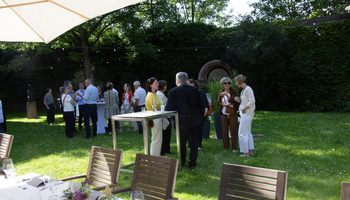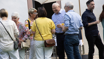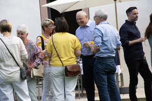 Festlich gedeckte Tafeln, Sonnenschein an einem lauen Frühsommerabend und beste Laune: So lässt sich das Get-Together der Caritas-Schulen gGmbH beschreiben, das am vergangenen Freitagabend in Himmelspforten in Würzburg stattfand. Eingeladen hatte Rudolf Hofmann, Geschäftsführer der Caritas-Schulen gGmbH, und wie in den vergangenen Jahren auch „steht der Dank für das Geleistete an Sie und euch heute im Mittelpunkt“, begrüßte er die die vielen Schulleiterinnen und Schulleiter sowie ihre Stellvertreterinnen und Stellvertreter, die der Einladung nach Würzburg gefolgt waren. „Nach einem kulturellen Teil heute Nachmittag mit der Führung durch das Kloster Oberzell dürfen wir uns nun auf einen schönen und vor allem leckeren Abend hier in Himmelspforten freuen“, so Hoffmann. Er wünschte allen einen wunderbaren Abend und freute sich auf die guten Gespräche und den Austausch untereinander.