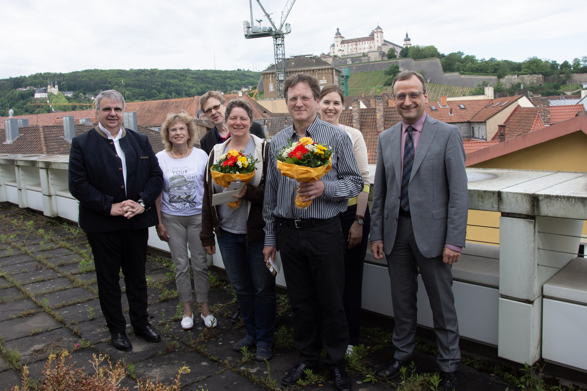 Auch die Mitglieder der Leitungskonferenz schlossen sich Biebers Glückwünschen an und gratulierten herzlich. Abteilungsleiter Andreas König übergab jedem einen Blumenstrauß und erinnerte an die vielfältigen und wichtigen Aufgaben, die Beyer im Referat Digitalisierung und Hütter in Sachen Wirtschaftliche Beratung und Caritasstiftung übernehmen.
