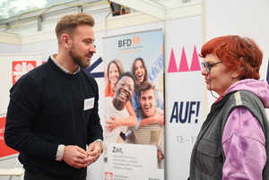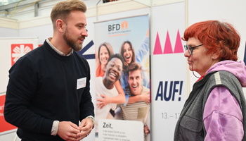 Zahlreiche Akteure zeigen am Stand des christlichen Wohlfahrtsverbandes, wie sich Menschen beruflich und ehrenamtlich für Menschen in allen Lebenslagen und -phasen einsetzen. Am zurückliegenden Wochenende präsentierten sich die Malteser, ein Fachverband der Caritas. Auch die jungen Leute von Don Bosco kamen beim Publikum sehr gut an. Am Donnerstag stand der Bundesfreiwilligendienst (BFD) im Zentrum. Altenhilfe, die Schwangerschaftsberatung im Sozialdienst katholischer Frauen (SKF) und die Kinder- und Jugendhilfe stehen für die kommenden Tage in den Startlöchern.