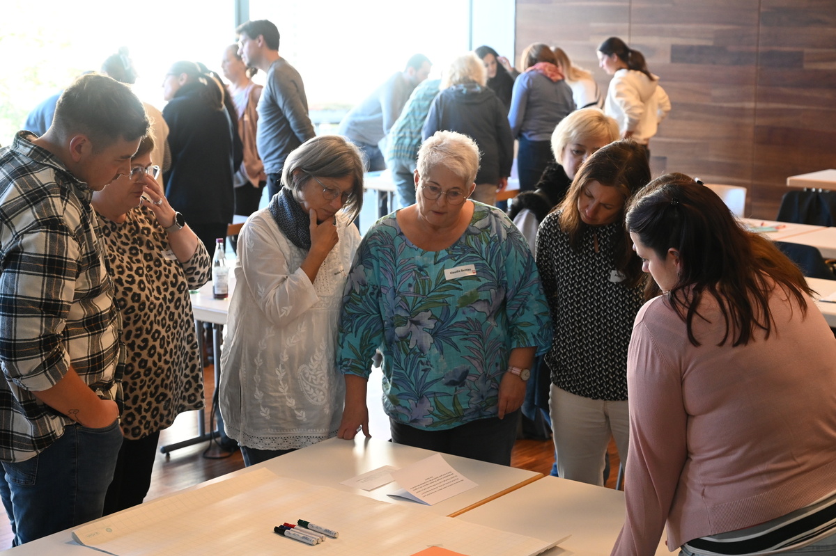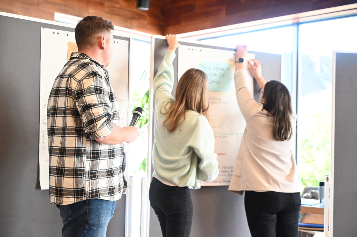 Die Nachmittage der drei Einführungstage nutzten die Teilnehmenden jeweils, um sich persönlich besser kennenzulernen und zu netzwerken. Dazu hatte das Team um Dr. Sebastian Schoknecht und Maria Wallrapp verschiedene Flipcharts aufgestellt, auf denen jeweils Thesen bzw. Fragestellungen zu lesen waren. Diskutiert wurde dabei unter anderem, was für jeden einzelnen für die Arbeit bei der Caritas wichtig ist, aus welchen Quellen der jeweilige Mitarbeitende seine Motivation zieht oder wo es Verbesserungspotenzial gibt.