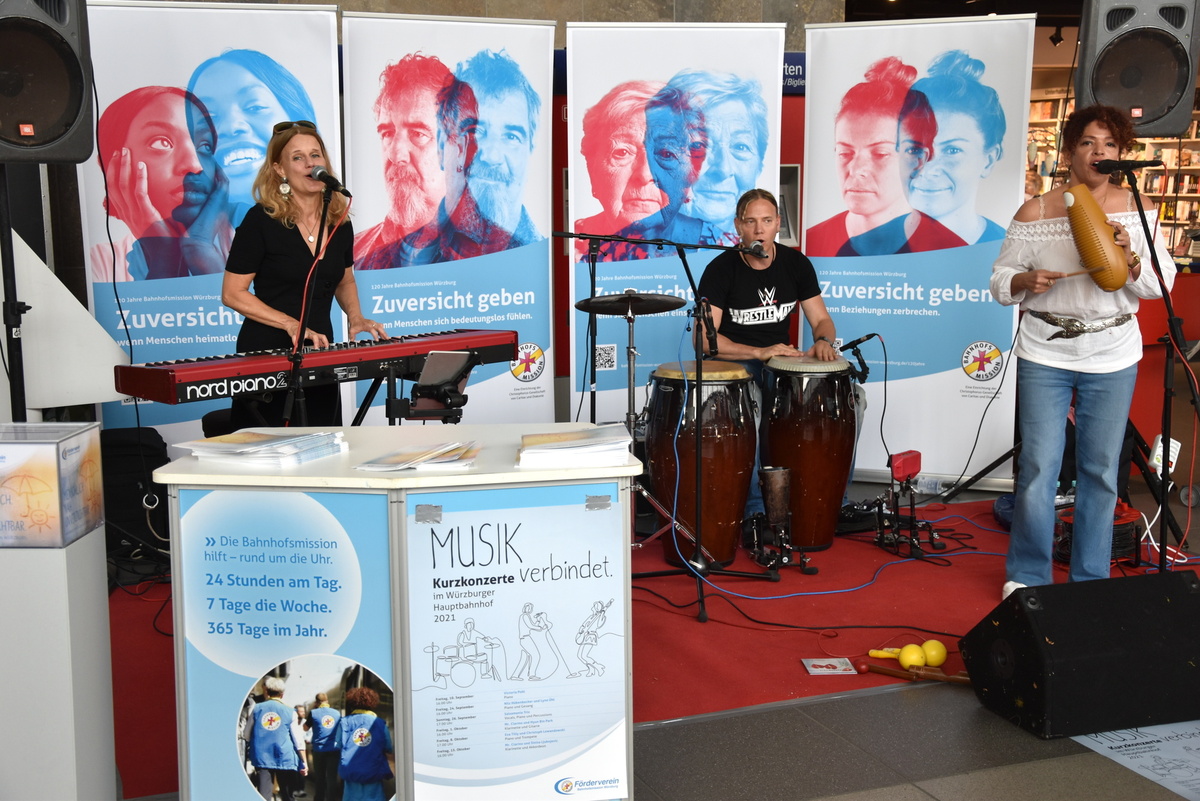 Die Haupt- und Ehrenamtlichen der Bahnhofsmission kennen keine Berührungsängste. Gleiches gilt für die Künstlerinnen und Künstler, die an der Kurzkonzertreihe teilnehmen. „Wir unterstützen den Förderverein sehr gerne“, sagt Eva Tilly von „Salsamania“. Auch Nils Hübenbecker und Lynn Ühl, die am 24. September das zweite Konzert bestritten, stehen voll und ganz hinter der Idee, Menschen in Not direkt am Bahnhof zu helfen. Pianistin Viktoria Pohl, die zum Auftakt der Kurzkonzertreihe im Hauptbahnhof spielte, ist es ebenfalls wichtig, die Arbeit der Bahnhofsmission aktiv zu fördern.