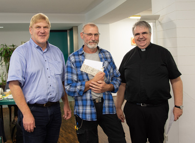 „Du bist wie der heilige Geist. Man sieht dich zwar nie, du bist aber trotzdem immer da“, mit diesen Worten gratulierte Domkapitular Clemens Bieber im Anschluss an das Mitarbeiterfrühstück Alfred Krafft, der vor Kurzem seinen 60. Geburtstag feierte. Vor der versammelten Mitarbeiterinnen- und Mitarbeiterschar des Caritashauses überraschten Referatsleiter Hubert Grauer und Domkapitular Clemens Bieber Krafft mit einem Gutschein für ein Wochenende im Kurhaus Bad Bocklet inklusive Ayurveda-Behandlung sowie vielen anerkennenden Worten für seine wertvolle Arbeit.