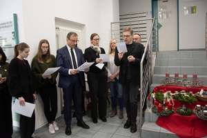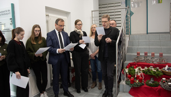 Zur Andacht mit Liedern, Texten und Gebeten versammelten sich die Mitarbeiterinnen und Mitarbeiter zur Mittagszeit im Foyer des Caritashauses in der Franziskanergasse. Die kurze Segnungsfeier stellte Domkapitular Clemens Bieber unter das Leitmotiv „In Erwartung“. Dazu interpretierte er unter anderem den Holzschnitt „In Erwartung“ von Walter Habdank. Außerdem trugen DiCV-Mitarbeitende Verse aus der Bibel vor, die das Thema in den Fokus rücken.