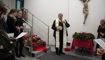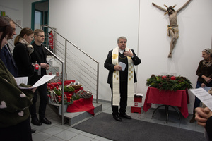 Am kommenden Sonntag beginnt die Adventszeit und mit ihr das neue Kirchenjahr. Während dieser Zeit gehören für viele Menschen Adventskränze und -gestecke dazu. Auch um zu zeigen, dass sie mehr als traditionelle Dekoration für Büro, Küche oder Wohnzimmer sind, wurden sie heute im Caritashaus gesegnet.