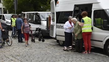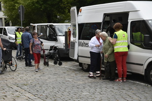 Den Maltesern liegen aus den Pfarreien und Caritas-Sozialstationen aus ganz Unterfranken über 250 Anmeldungen für die Wallfahrt vor. Die Angemeldeten werden mit rund 50 Malteser-Kleinbussen und Behindertentransportwagen aus Aschaffenburg oder Kitzingen, aus den Haßbergen oder der Rhön, aus Marktheidenfeld oder Würzburg abgeholt. „Der letzte Feinschliff für dieTourenplanung läuft gerade“, berichtet Sebastian Ernst, Malteser Fahrdienstverantwortlicher. Für manchen Teilnehmer beginnt der Wallfahrtstag dann bereits sehr früh, wenn um acht Uhr morgens der Malteserbus vor der Tür steht. „Wir möchten ja, dass alle pünktlich zum Gottesdienst in Würzburg sind“, so Sebastian Ernst. Am Kiliansdom angekommen werden die Rollstuhlpilgerinnen und -pilger wiederum von Helfenden der Caritas und der Malteser empfangen. Sie begleiten sie zu den Plätzen im extra leergeräumten Querschiff und sind auch während des Gottesdienstes für jegliche Anliegen da.