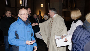 Am 14. Februar 1987 empfing Domkapitular Clemens Bieber die Priesterweihe. Daher dankten die Mitarbeiterinnen und Mitarbeiter der Dienstgemeinschaft im heutigen Gemeinschafsgottesdienst außerdem für seinen mittlerweile 38-jährigen Priesterdienst und sein Wirken für die unterfränkische Caritas. Sie schlossen ihn und seine damals mit ihm geweihten Mitbrüder unter anderem in ihre Fürbitten mit ein.
