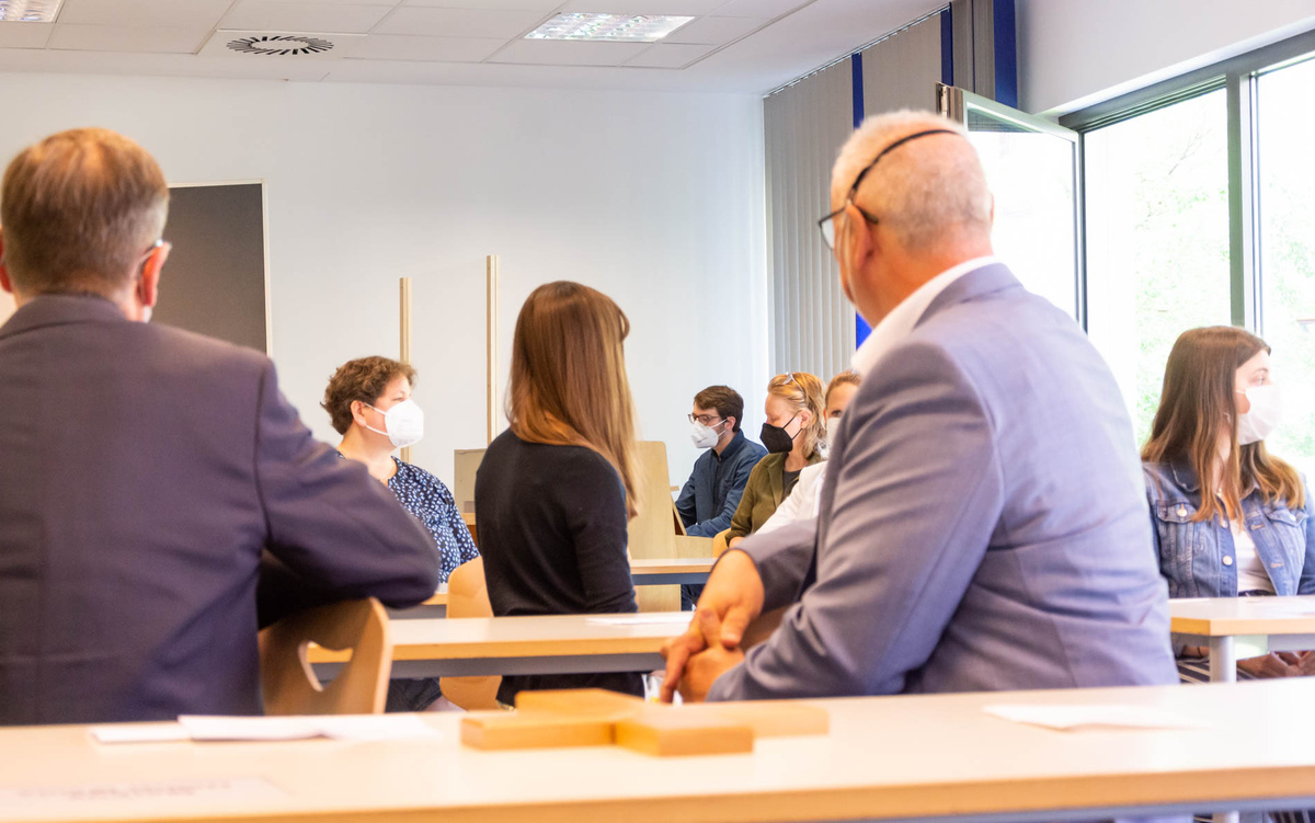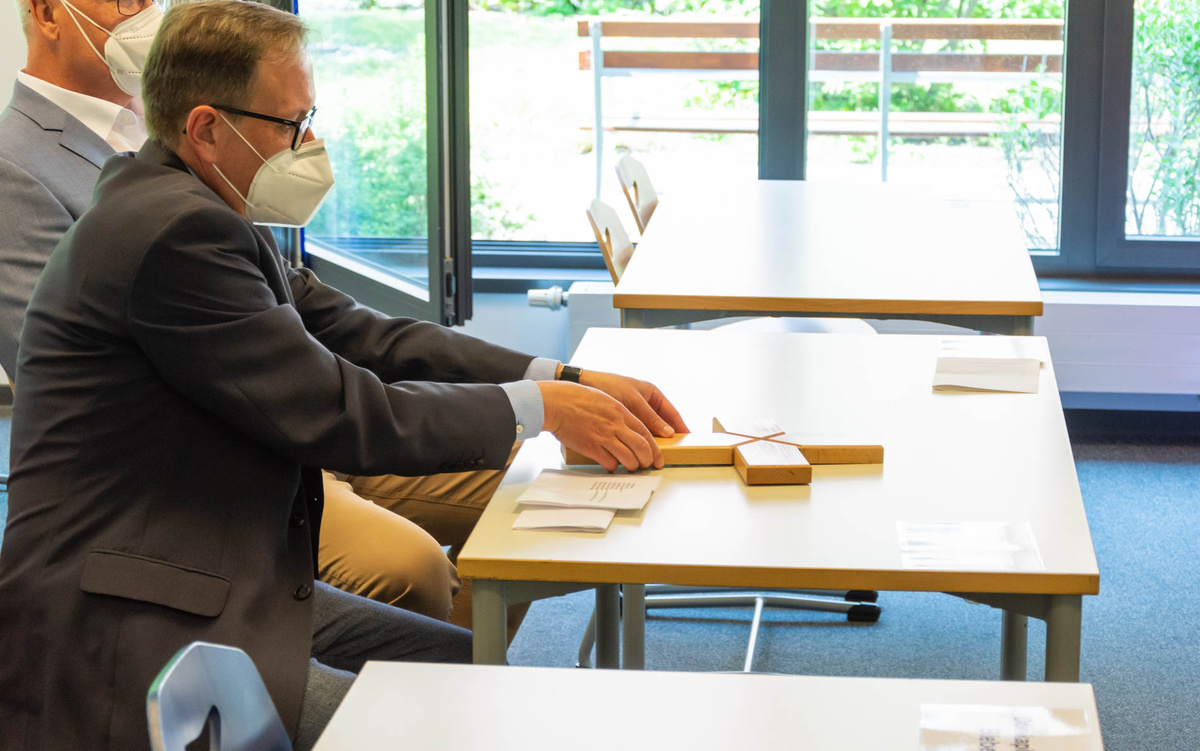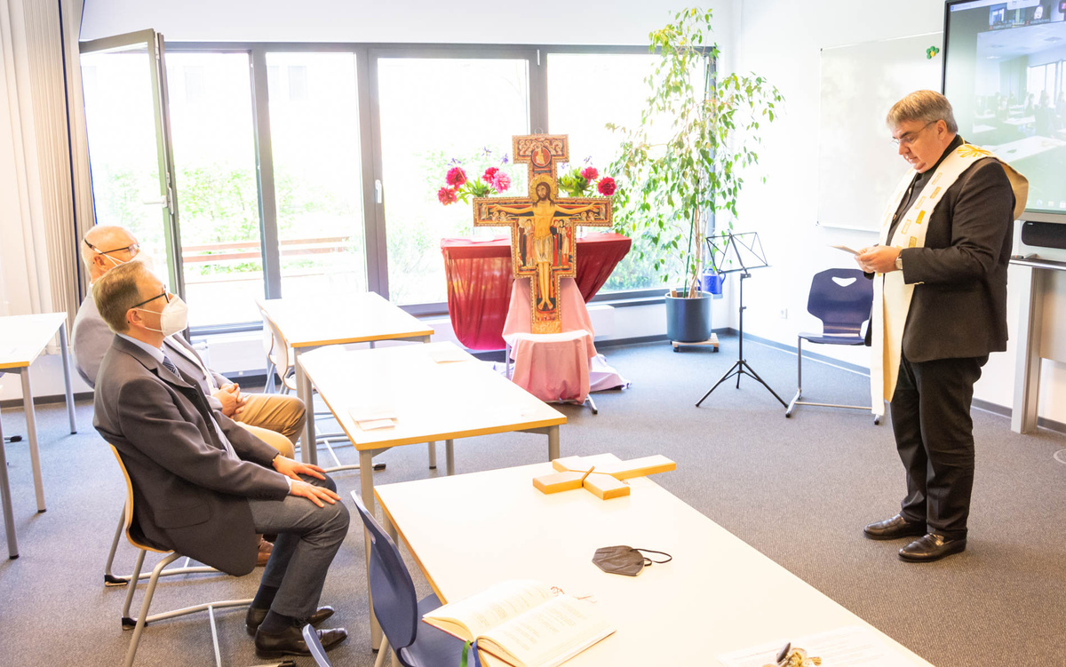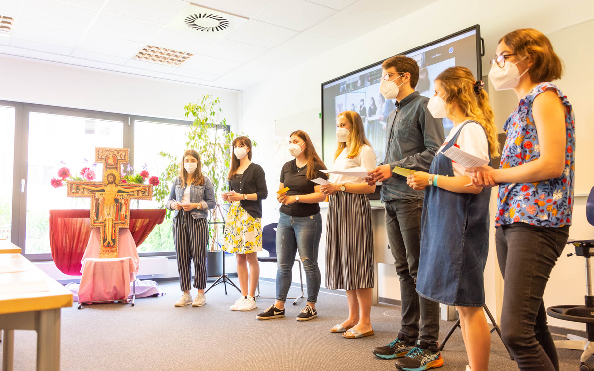 Einen kleinen, aber spürbaren Segen konnten die Teilnehmer unterdessen schon in der Feierstunde selbst erfahren. Bei den von Studierenden vorbereiteten Fürbitten kam es zu einem ungewöhnlichen Moment. „Die erste Bitte wurde tatsächlich schon erhört“, sagte ein sichtlich bewegter junger Mann, als er an der Reihe war. Er hatte eine Fürbitte vorbereitet, die darauf lautete, sich nach der langen Zeit der Trennung endlich wieder physisch begegnen zu könnten. Kurzerhand formuliert er seine Bitte daher um: Dass die Schulgemeinschaft der Berufsfachschule für Logopädie in ihren neuen Räumen lange und behütet zusammenbleiben möge.