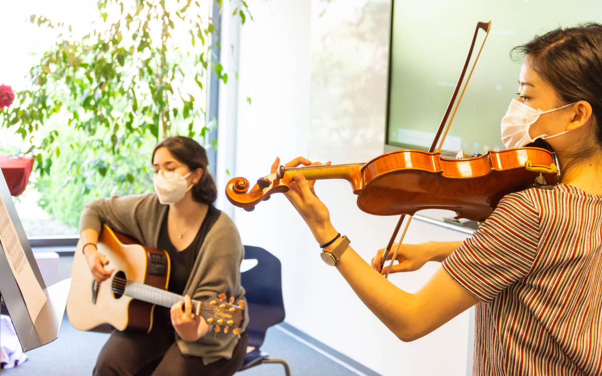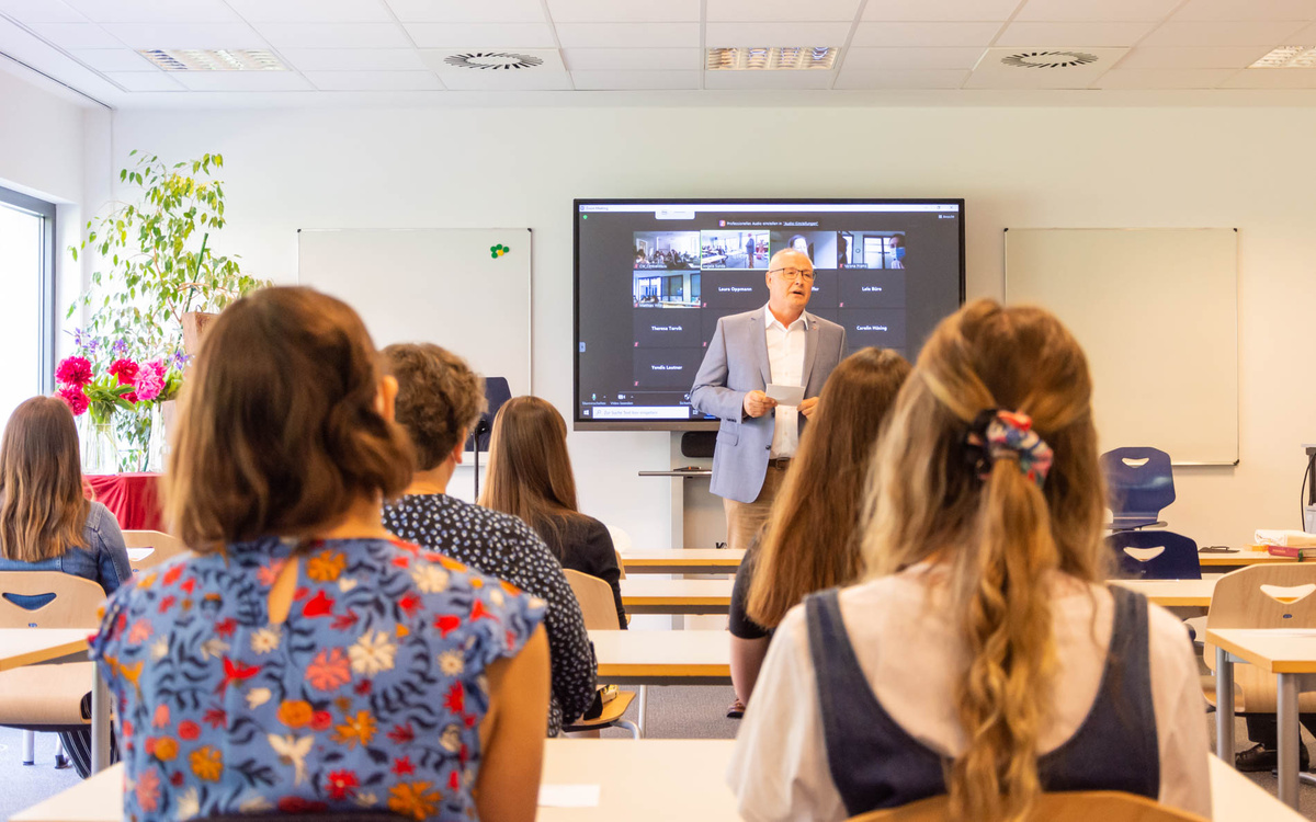 „Willkommen in Ihrem neuen Zuhause!“, begrüßte Schulleiter Markus Heinzl Mania die Studierenden zur Segensfeier. Sie seien in diesem Haus schließlich die „Hauptakteure“ – was sich auch bei der Feier der Segnung in Form gelungener musikalischer Beiträge und Gebete ausdrückte. Er freue sich sehr, dass die anstrengenden Monate der Renovierung der Schulräume und des Umzugs sichtbare Früchte tragen, erklärte Heinzl Mania. „Es haben alle gewonnen“, so der Schulleiter. Einen ausdrücklichen Dank richtete er dabei an das Lehrpersonal, das sich gerade beim Umzug in großem Maße persönlich eingebracht habe.
