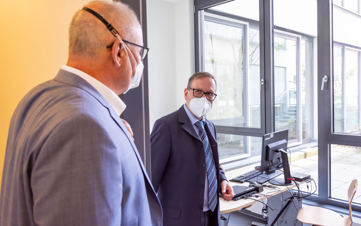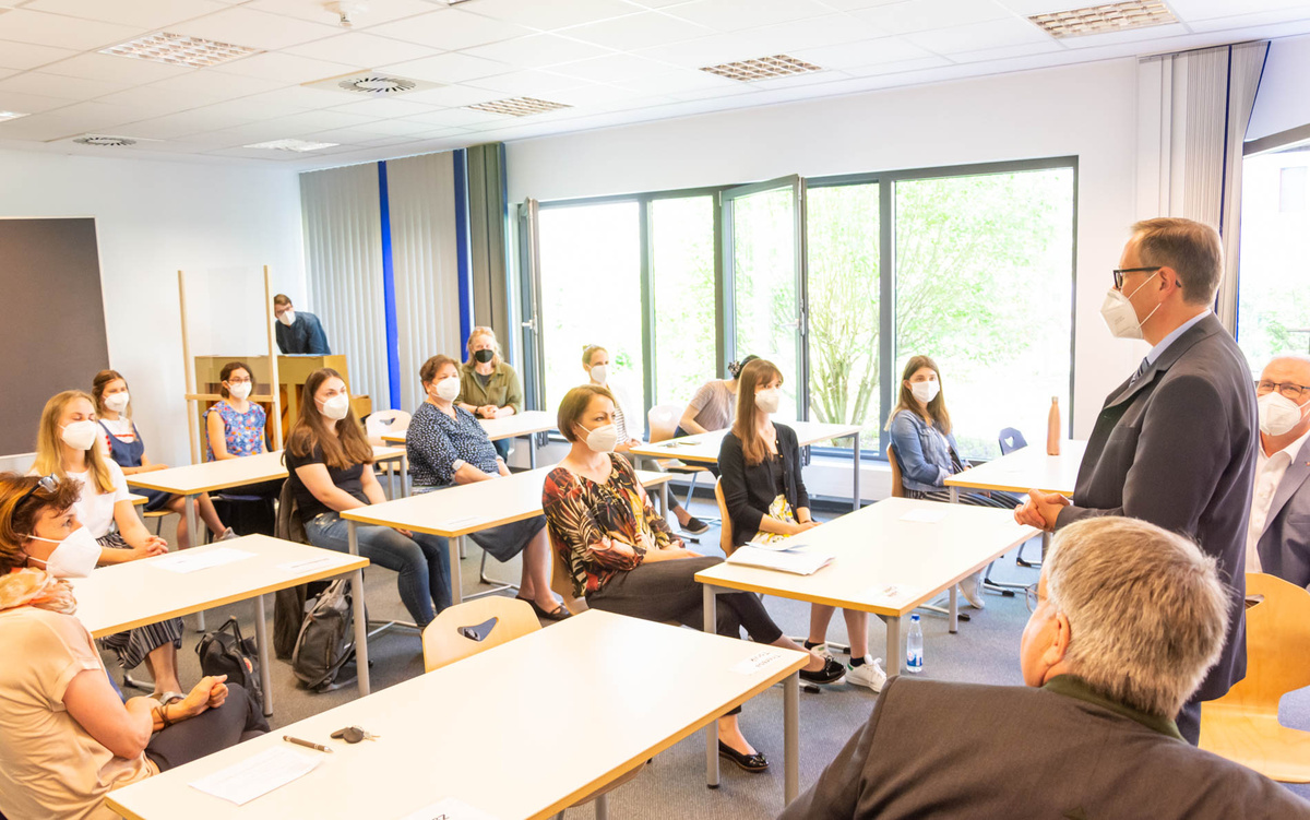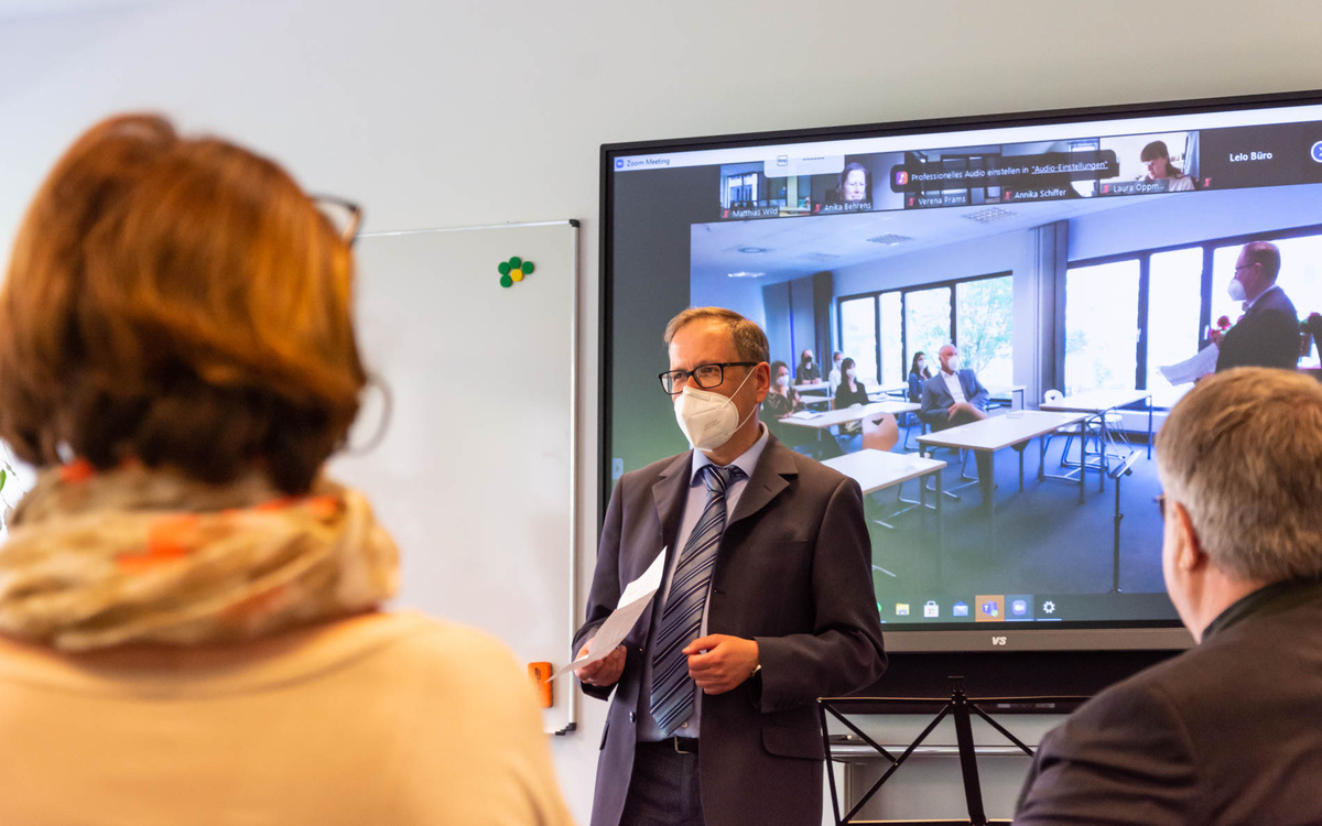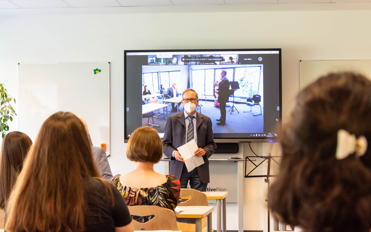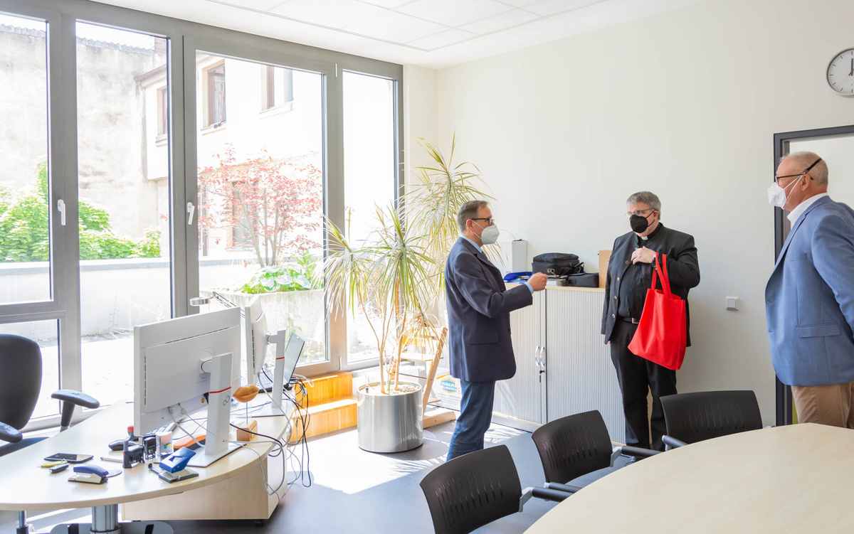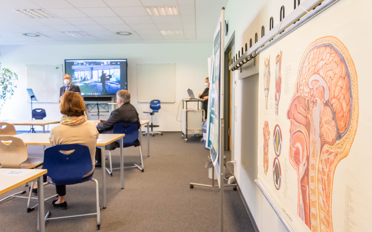 Heinzl Mania freue sich, dass den angehenden Logopädinnen und Logopäden nun helle und moderne Räume für die Ausbildung zur Verfügung stehen. Zugleich sei mit dem Umzug auch eine „Digitalisierungsoffensive durch die Hintertür“ verbunden gewesen. Die in den Unterrichts- und Therapieräumen verbaute Videoübertragungstechnik kam auch der Segnungsfeier zugute: Um Abstände zu wahren, wurde die Feier an mehrere Orte im Haus übertragen.