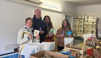 Feiertage sind immer etwas Besonderes – auch für Familien, die nur über ein kleines Budget verfügen. Daher wurden von ukrainischen Geflüchteten im Vorfeld der Osterfeiertage 100 Lebensmitteltüten für die Ausgabe im Martinsladen des Caritasverbandes für den Landkreis Rhön-Grabfeld e. V. (KCV Rhön-Grabfeld) gepackt. Immer zu Weihnachten und Ostern gebe es diese Sonderaktion, berichtet Elke Storch vom KCV Rhön-Grabfeld, und die ukrainischen Frauen und Männer würden schon lange vorher fragen, ob sie wieder beim Packen helfen können. „Wir sind sehr dankbar, dass wir so viel Unterstützung in Deutschland bekommen und freuen uns sehr, wenn wir durch unsere Mithilfe beim Packen der Lebensmitteltaschen etwas zurückgeben können“, sagte Inna Koval, eine der ukrainischen Frauen, die seit Beginn des Krieges in Deutschland ist, bei der Packaktion mitgeholfen hatte und schon sehr gut deutsch spricht.