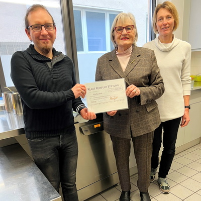 Im Kleinheim leben neun Menschen mit chronisch psychischer Erkrankung, die in ihrem Alltag Unterstützung bekommen. Seit Eröffnung des Hauses im Jahr 1999 ist es im Konzept vorgesehen, dass Bewohnerinnen und Bewohner sich an den Aufgaben im gemeinsamen Haushalt beteiligen. Dazu gehört auch die Arbeit in der Küche. Bisher wurde mit der Hand gespült. Durch die großzügige Spende, die von Ruth Reinfurt an Michael Kramer, Einrichtungsleiter des Wohnverbunds Haus Gertrud, und Martina Bitzek, Hauswirtschaftsleiterin im Kleinheim Bärengasse, übergeben wurde, konnte eine gewerbliche Geschirrspülmaschine angeschafft werden, die nun für Unterstützung und Hygiene in der Küche sorgt. Bewohnerinnen und Bewohnern sowie dem Personal wird die gemeinsame Arbeit in der Küche durch die Neuanschaffung erheblich erleichtert.