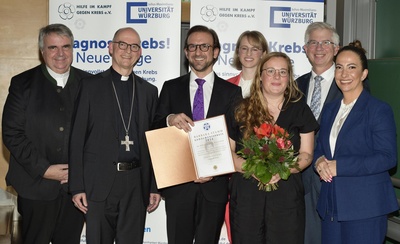 Für dieses Engagement wurde nun das Projekt „Familienlotse“ im Rahmen der Verleihung der Förderpreise der Stiftung „Forschung hilft“ mit dem Barbara-Stamm-Gedächtnispreis ausgezeichnet. Stamm selbst war bis zu ihrem Tod 2022 Ehrenpräsidentin von „Forschung hilft“. Der Sonderpreis, der in diesem Jahr von der Caritasstiftung Würzburg mit 5.000 Euro dotiert ist, zeichnete ein vom Lehrstuhl für Integrierte Psychosomatische Medizin an der Medizinischen Klinik II und von der Frauenklinik des UKW initiiertes Projekt aus, dass sich an Angehörige von Krebspatienten wendet. Es nimmt vor allem Kinder in den Blick, wenn ein Elternteil an Krebs erkrankt. Ziel sei, psychische Belastungen zu reduzieren und Resilienz zu stärken, um damit die Gesundheit und Lebensqualität der Kinder zu verbessern, sagte Würzburgs Bischof Dr. Franz Jung in seiner Laudatio. „Mit seinem aufsuchenden Charakter nimmt das Projekt ‚Familienlotse‘ daher eine Vorreiterrolle für einen dringend benötigten Kulturwandel in der medizinischen Versorgung ein“, so der Bischof. Er überreichte gemeinsam mit Domkapitular Clemens Bieber, Vorsitzender des Caritasverbandes für die Diözese Würzburg e. V., den Sonderpreis an das Projektteam um Prof. Dr. Achim Wöckel und Prof. Dr. Imad Maatouk vom Universitätsklinikum Würzburg (UKW).