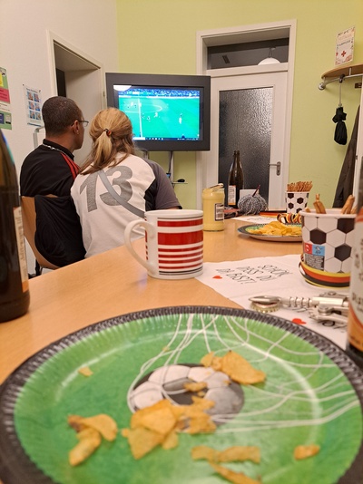 Dass dies – trotz des Ausscheidens der deutschen Elf im Viertelfinale gegen Spanien – gelungen ist, zeige die gute Resonanz, die Christof und mehrere helfende Ehrenamtliche sowohl der Wärmestube als auch des Fördervereins auf das Angebot bekommen haben. „Während man die Zuschauer beim ersten Spiel beinahe noch an einer Hand abzählen konnte, wurden es von Mal zu Mal mehr“, erzählt Christof. Zum Viertelfinale war die Veranstaltung dann großartig besucht. Auch die „Halbzeitverpflegung“ mit Bratwurst im Brötchen und alkoholfreien Getränken sei bei den Besuchern der Würzburger Einrichtung in der Rüdigerstraße gut angekommen. „Unser Ansinnen, die Europameisterschaft in diesen Tagen als ein Fußball-Fest zu sehen, das erst in der Gemeinschaft zu einem einzigartigen Erlebnis wird, hat geklappt“, so Christof.