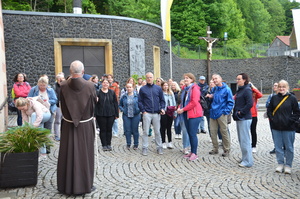 Mittlerweile sind die fünf Franziskanerbrüder, die heute noch auf dem Kreuzberg leben, vornehmlich für die Wallfahrtsseelsorge und die Feier der Gottesdienste auf dem „heiligen Berg der Franken“ zuständig. Die Brauerei und der ganze Gästebetrieb wurden vor einigen Jahren outgesourct und liegen mittlerweile in den Händen einer GmbH, nämlich der Franziskaner Klosterbetriebe GmbH. Zum Abschluss der Klosterführung segnete Bruder Korbinian die Gruppe mit den Kreuzreliquien und wünschte schon jetzt „Einen guten Appetit in der Klosterschänke und anschließend eine gesegnete Rückfahrt nach Würzburg.“