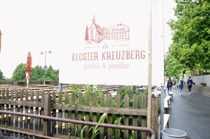 Zum letzten, von der MAV vorbereiteten Programmpunkt kamen dann alle 107 Ausflüglerinnen und Ausflügler zum gemeinsamen Mittagessen in der Klosterschänke des Kreuzberges zusammen. Auf Einladung der DiCV-Geschäftsleitung ließen sich die Mitarbeiterinnen und Mitarbeiter hier eine große Auswahl an fränkischen Köstlichkeiten wie knuspriger Haxen, Schweinebraten mit Klößen, Käsespätzle mit Salat u. v. m. schmecken, bevor es anschließend wieder mit den Bussen in Richtung Würzburger Residenzparkplatz, wo man sich am Morgen zur Abfahrt bereits getroffen hatte, zurückging.