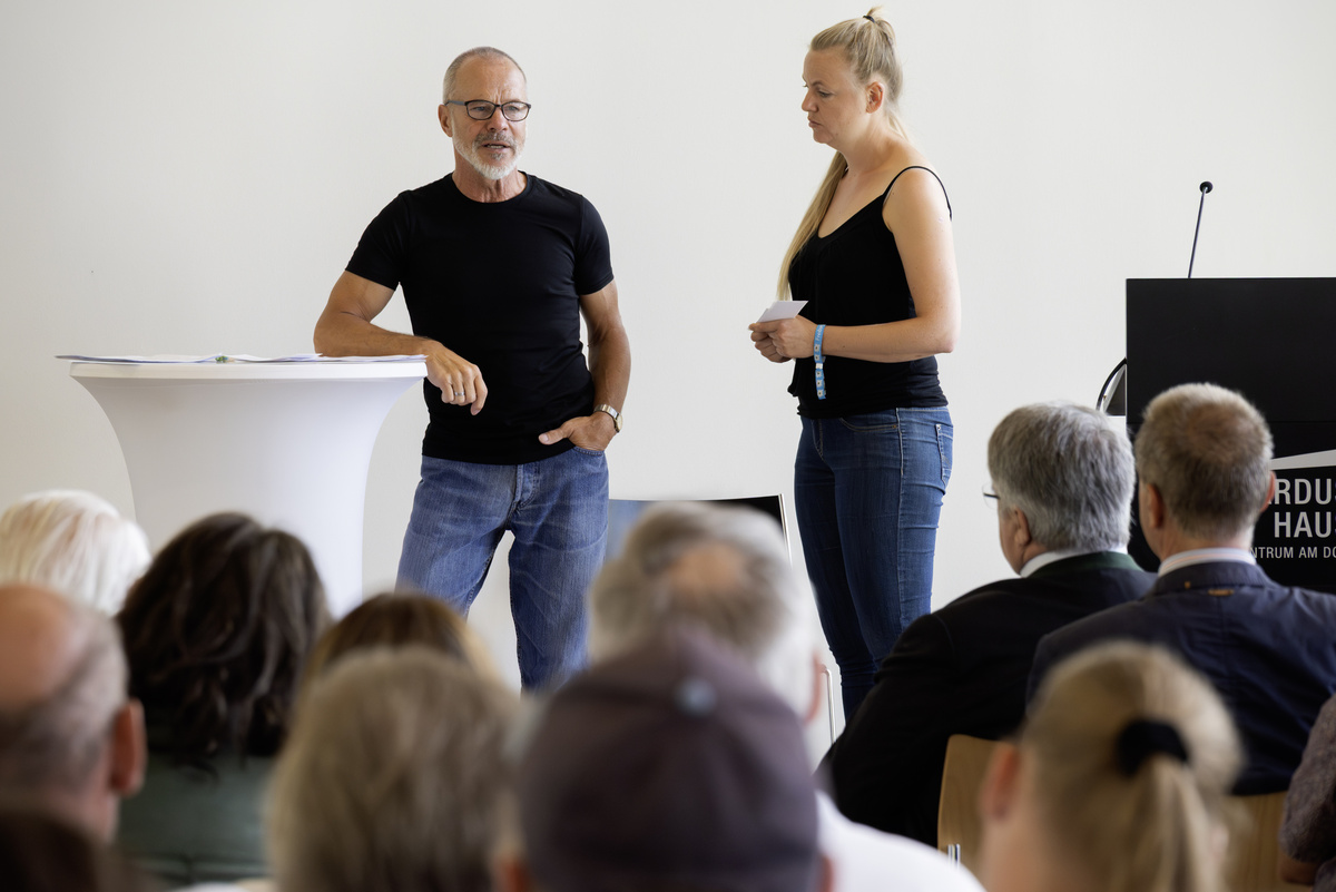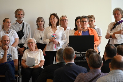 Statt vieler Grußworte, beeindruckte das Schauspielduo Boris Ben Siegel und Julia-Stephanie Schmitt mit einer Performance. Sie lasen aus Interviews, die zuvor mit Klientinnen und Klienten geführt worden waren und gaben damit einen Einblick in prekäre Lebensläufe, die gezeichnet sind von Missbrauch, Sucht, Straftaten und Inhaftierung und doch getragen werden von kleinen und großen Hoffnungen, von der Sehnsucht nach Glück und einer großen Dankbarkeit für Hilfe und Unterstützung. Gerahmt und begleitet wurde die viel gelobte Performance musikalisch von Andrea Dehler, Leiterin der Wärmestube.