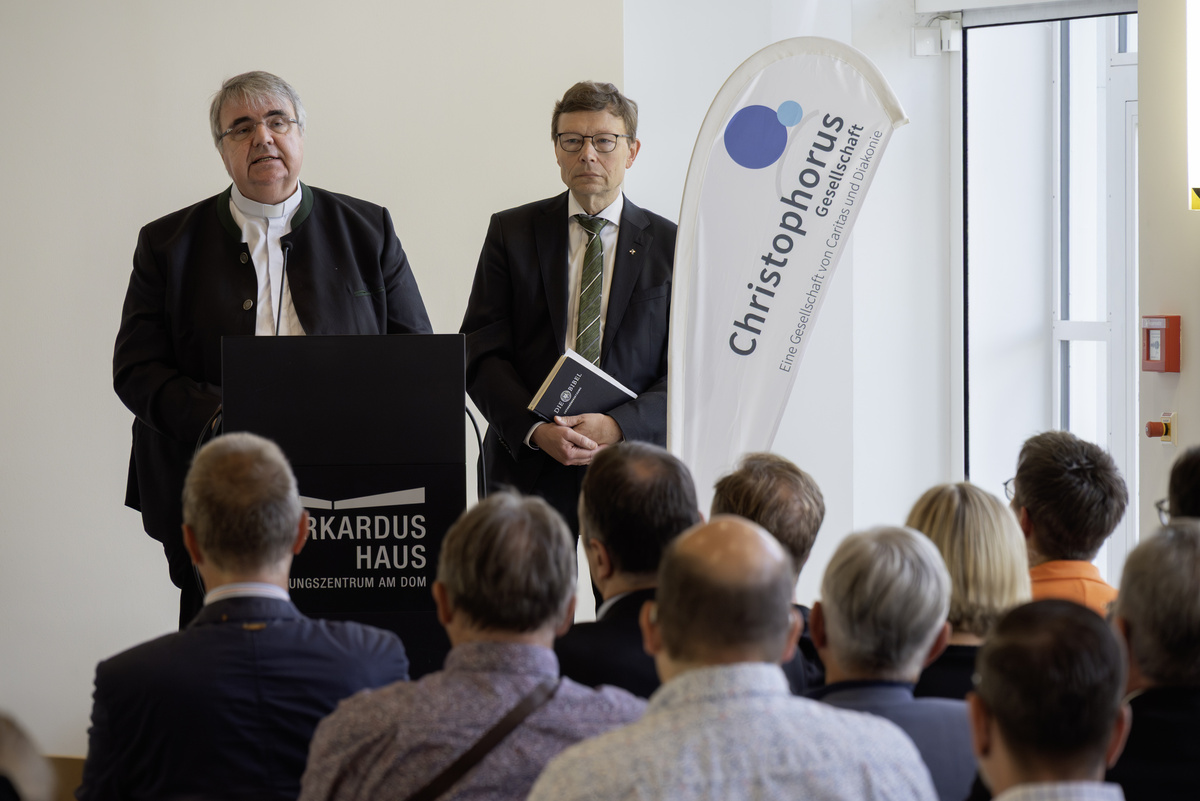 Domkapitular Clemens Bieber, Vorsitzender des Diözesan-Caritasverbandes, und Dekan Dr. Wenrich Slenczka, machten in ökumenischer Verbundenheit deutlich, in wessen Geist und aus welchen Quellen heraus die Christophorus-Gesellschaft seit 25 Jahren ihren Dienst erbringt. „Wir leben in einer Hochglanzgesellschaft“, so Dekan Slenczka "und vergessen dabei oftmals die am Rande." Sich ihnen zuzuwenden bringe erst den göttlichen Glanz in die Welt. Bieber unterstrich den Auftrag, im Geiste Jesu ein Segen für die Menschen zu sein.