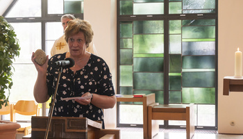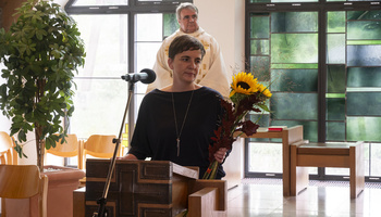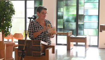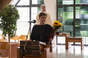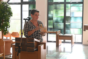 Für die Mitarbeitervertretung am Simonshof sprach Karin Koberstein-Reß und wünschte dem neuen Leitungsteam alles Gute, ein glückliches Händchen bei wichtigen Entscheidungen und Gottes Segen.