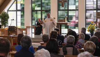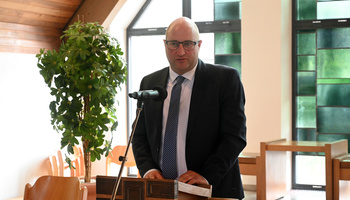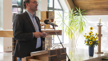 Kilian Bundschuh, Referatsleiter "Besondere Lebenslagen" im Caritasverband für die Diözese Würzburg, begrüßte in der gut besuchten Kapelle des Simonshofs zahlreiche Mitarbeiterinnen und Mitarbeiter, Bewohner sowie Gäste und Verantwortliche der Caritas. Besonders freue er sich über die Anwesenheit von Bezirkstagspräsident Erwin Dotzel, dem stellvertretenden Landrat Bruno Altrichter und Bastheims Bürgermeister Tobias Seufert. „Dass sie unserer Einladung gefolgt sind, zeigt uns, wie wichtig auch ihnen der Simonshof ist.“
