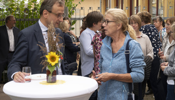 Mitarbeiterinnen und Mitarbeiter, die den Simonshof nicht kannten, nutzten die Gelegenheit zu einem Rundgang über das weitläufige Gelände. Schließlich waren alle eingeladen zu einem schmackhaften Imbiss, Gesprächen und Erfahrungsaustausch.