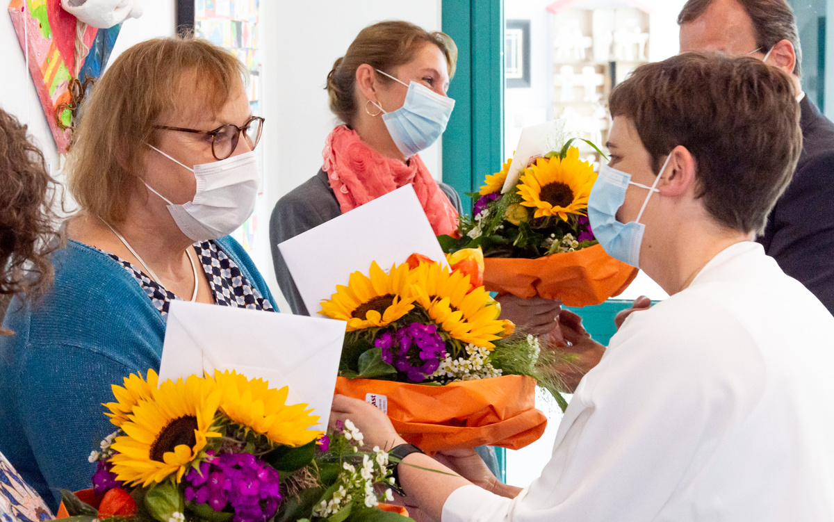 Neben der Leitung des Diözesan-Caritasverbands nahm auch die MAV die Gelegenheit wahr, den Kolleginnen zu gratulieren. Im Namen der Mitarbeitervertretung dankte auch Michael Biermeier für die Treue, teils seit der Ausbildung. „Das zeigt mir, dass wir eine gute Dienstgemeinschaft sind und auch ein guter Ausbildungsbetrieb!“ Während die Verbandsleitung die Jubilarinnen mit Blumen bedachte, gab es von der MAV etwas „für Leib und Seele“ – eine gute Tafel Schokolade.