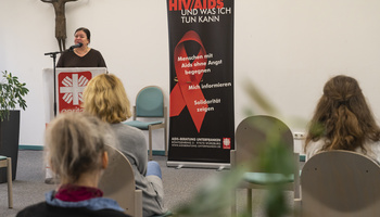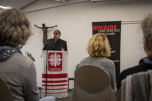„Dies ist ein wichtiger Tag. Es geht am Welt-Aids-Tag um Solidarität statt Ausgrenzung“, begrüßte Domkapitular Clemens Bieber Mitarbeiterinnen und Mitarbeiter der Aids-Beratung Unterfranken, Abteilungsleitungen des DiCV, Gäste sowie Eva-Maria Löffler, Leiterin der Sozialverwaltung beim Bezirk Unterfranken.