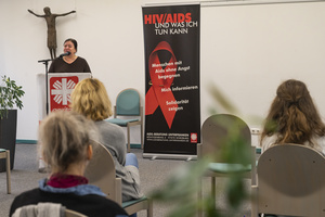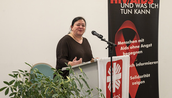 „Hinter mir liegen mit Blick auf die neue Rolle, spannende und zugleich anstrengende Wochen und Monate“, führte Heidrun Brand aus. Sie habe die Strukturen auf neue Art und Weise kennenlernen und sich mit bis dahin unbekannten Finanzfragen beschäftigen müssen. „Auch die Vorbereitungen des diesjährigen Welt-Aids-Tages waren eine Herausforderung.“ Sie bedauere es sehr, dass alle Veranstaltungen abgesagt werden mussten. „Schauen Sie am Abend auf unsere Homepage. Wir haben alles gut aufbereitet, um zum Nachdenken anzuregen.“ Für das kommende Jahr wünsche sie sich für das ganze Team mehr Ruhe und Sammlung. Brand dankte ausdrücklich für die Unterstützung durch den Bezirk Unterfranken, durch medizinische Einrichtungen und den Caritasverband für die Diözese Würzburg. „Wir sind, weil es uns um die Menschen geht, auch weiterhin auf Unterstützung und Wohlwollen angewiesen.“ Dank gelte auch ihren Vorgängern, Alfred Spall und Michael Koch, von denen sie viel habe lernen können.