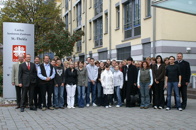 Mit 34.000 Euro unterstützt der diözesane Solidaritätsfonds in diesem Jahr die berufliche Ausbildung von vierundvierzig jungen Menschen. Die jungen Leute, die teils von der Schule kommen, teils arbeitslos waren, werden in der Verwaltung, im Küchenbereich, im Hotelfach und in der Altenpflege in Häusern der Caritas-Einrichtungen gGmbH ausgebildet. Ihr Geschäftsführer Marco Bambach begrüßte die Jugendlichen im Caritas-Seniorenzentrum St. Thekla und entschuldigte gleichzeitig seinen Aufsichtsratsvorsitzenden Dr. Adolf Bauer, der als Mitglied im Solidaritätsfonds gerne diesen Termin wahrgenommen hätte. Vertreten wurde Bauer von Domkapitular Diedrich Seidel, dem Vorsitzenden des Diözesan-Caritasverbandes. Es freue ihn sehr, so Seidel, dass die Kirche über diesen Fond seit vielen Jahren Geld zur Verfügung stelle, um jungen Menschen eine Zukunft zu eröffnen und ihnen eine Perspektive zu geben. Besonders in wirtschaftlich schwierigen Zeiten fühle sich die Kirche verpflichtet, Ausbildungsplätze zu bieten und zu unterstützen.