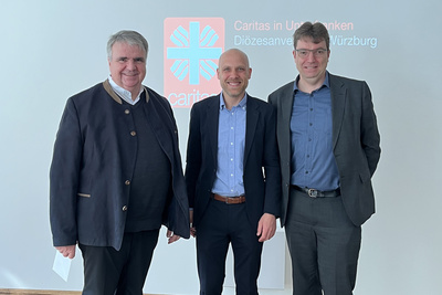 Neben den Mitarbeitenden, die sich zu einer kleinen Feierstunde im Seminarraum des Caritashauses eingefunden hatten, gratulierten auch die beiden Gesellschafter der CEG, der Bischöfliche Finanzdirektor Gerald Düchs sowie Domkapitular Clemens Bieber für den Caritasverband für die Diözese Würzburg e. V. (DiCV).