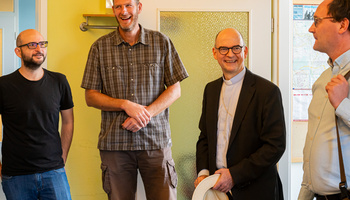 Schuldner- und Insolvenzberatung, Wärmestube, Kurzzeitübernachtung und Johann-Weber-Haus. Gleich vier Einrichtungen der Würzburger Christophorus-Gesellschaft, getragen von Caritas und Diakonie, besuchte Bischof Dr. Franz Jung am Freitag, 15. September. Begleitet wurde der Bischof auf seinem Weg durch die Häuser von Nadia Fiedler, Geschäftsführerin der Gesellschaft, und Kilian Bundschuh, Referent für besondere Lebenslagen im Caritasverband für die Diözese Würzburg.