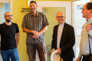 Wie zutreffend dies ist, zeigte die nächste Station: die Wärmestube in der Rüdigerstraße. Moritz Maier und Andreas Schick führten durch die Räumlichkeiten und berichteten dem interessierten Bischof über die alltägliche Arbeit. „Wir sind ein niederschwelliges Angebot, das nicht nur von obdach- und wohnsitzlosen Personen genutzt wird, sondern auch von denen, die sich daheim einsam fühlen.“ Die Wärmestube biete Duschen, eine Waschmaschine, gesundheitliche und soziale Angebote, Gemeinschaft und einen Rückzugsort für die, die auf der Straße lebten. Es gebe Zuschüsse, auch von der Stadt, so Fiedler, „aber der Großteil des benötigten Geldes kommt von Caritas und Diakonie.“ Ohne zusätzliche Spenden und ehrenamtliches Engagement gehe es nicht, so Einrichtungsleiter Maier. Maier würdigte zudem die wertvolle Arbeit des Fördervereins Wärmestube e. V. „Paul Lehrieder und Bernhard Christof öffnen uns immer wieder Türen und ermöglichen damit Projekte, die für unsere Besucherinnen und Besuchern sehr hilfreich sind.“